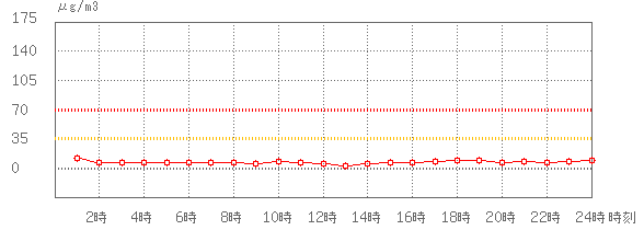 ※グラフのデータである1時間値とは直接比較できませんが、35µg/m3 (環境基準:1日平均)、70µg/m3 (注意喚起暫定指針:1日平均)に参考として線を記載しています。