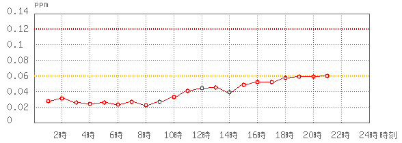 環境基準 :8時間値が0.07ppm以下であり、かつ、日最高8時間値の年平均値が0.04ppm以下であること。