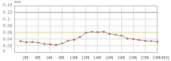 環境基準 :8時間値が0.07ppm以下であり、かつ、日最高8時間値の年平均値が0.04ppm以下であること。