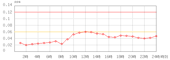 環境基準 :8時間値が0.07ppm以下であり、かつ、日最高8時間値の年平均値が0.04ppm以下であること。