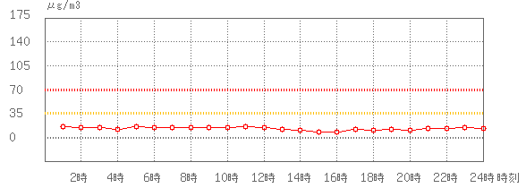 ※グラフのデータである1時間値とは直接比較できませんが、35µg/m3 (環境基準:1日平均)、70µg/m3 (注意喚起暫定指針:1日平均)に参考として線を記載しています。