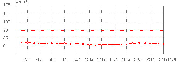 ※グラフのデータである1時間値とは直接比較できませんが、35µg/m3 (環境基準:1日平均)、70µg/m3 (注意喚起暫定指針:1日平均)に参考として線を記載しています。